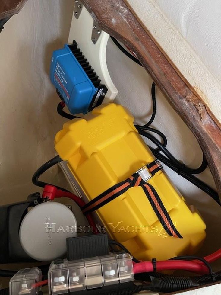 3 x batteries. (1 x engine 2 x domestic) Bow thruster battery. 240 volt shore power. Battery charger. Victron battery monitor with bluetooth.
