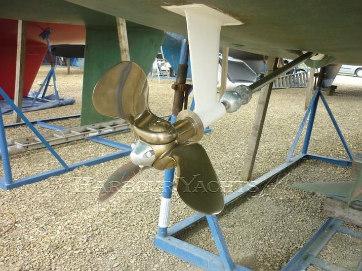 Yanmar 2GM20F 20hp diesel engine. Shaft drive with auto prop self pitching three bladed propeller (fitted 2020). Brunton's Sigma drive fitted to shaft. Cutlass bearing (2019). Side power bow thruster. 95 litre fuel tank. 189 litre water tank.