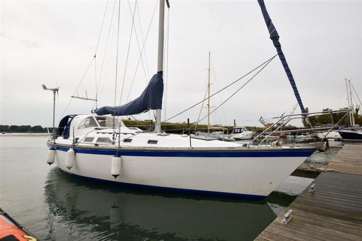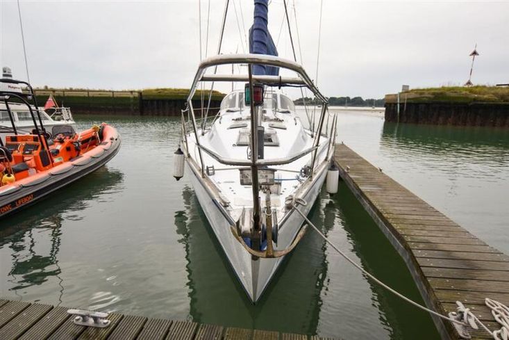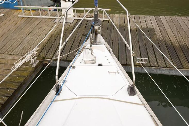 Masthead rigged Bermudan sloop. Deckstepped alloy mast and boom. Stainless steel standing rigging, 1983 (new forestay 2025). Terylene running rigging led aft to the cockpit. Slab reefing to mainsail. Headsail furling system. Two Lewmar 43 self tailing sheet winches. Two Lewmar self tailing secondary winches. Spinnaker pole. Mainsheet track.