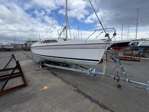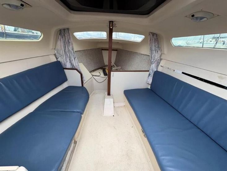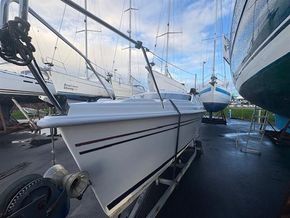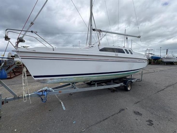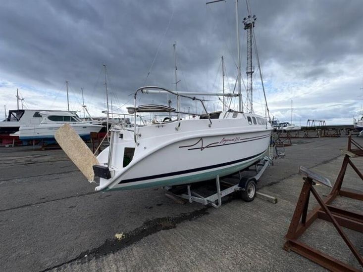 SummaryThe Hunter Legend 240 is a 24-foot recreational keelboat with a swing keel, built by Hunter Marine. It features a fractional sloop rig, raked stem, and walk-through reverse transom. It's designed for easy trailering and setup, with sleeping accommodations for four. Tranquility has a 4hp Outboard engine and trailer. Specification The Hunter Legend 240 is a 24-foot recreational keelboat with a swing keel, built by Hunter Marine. It features a fractional sloop rig, raked stem, and walk-through reverse transom. It's designed for easy trailering and setup, with sleeping accommodations for four. Tranquility has a 4hp Outboard engine and trailer. Forward and aft curtained off cabins sleeping 2 each and P+S bunks. Fully cushioned throughout plus waterproof cockpit ones.Large port and starboard lockers in cockpit and cabin.Ideal for a large family, the innovative design A very spacious cockpit outside.The main hatch can be raised to increase head room. The deck includes a built in mast raising and lowering system.The integral water ballast system means reduced towing weight, greater stability under way and easy launched.Equipment includes:Raymarine ST60 Tri-data spead and depthAnchor chain and warp, Fenders and warps Stainless Steel boarding ladderBathing platformPulpit, push pit and guard rails Stern Dickies seats port and starboard.Trailer ?